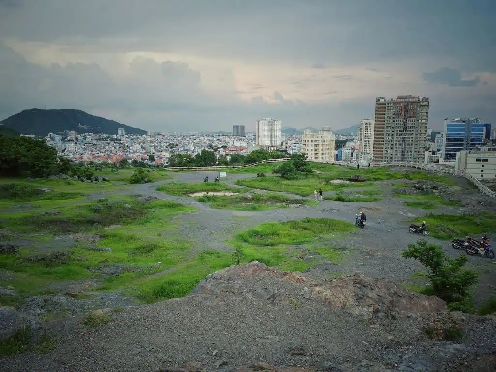 Nếu bạn đang cần tìm một góc sống ảo “cool ngầu”, mỏm đá lớn trên đỉnh đồi chính là điểm đến lý tưởng. Đây là nơi dành cho những người yêu thích sự mạo hiểm, với những vách đá gập ghềnh và không gian hùng vĩ. Đặt chân lên mỏm đá, bạn sẽ được chiêm ngưỡng toàn cảnh thành phố biển xinh đẹp và bức tranh biển xanh mênh mông. Sự bao la của thiên nhiên nơi này sẽ khiến bạn phải trầm trồ về vẻ đẹp tự nhiên tuyệt vời nơi đây.