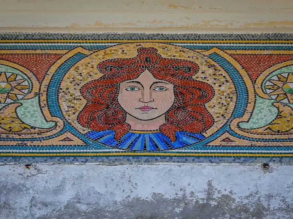 Hầu hết các chi tiết trang trí bên trong đều được chế tác từ sứ men cao cấp, mang phong cách nghệ thuật đặc trưng. Dọc theo tường là những họa tiết cá chép uốn lượn, chim muông xòe cánh, tạo nên không gian vừa cổ điển vừa tinh tế.