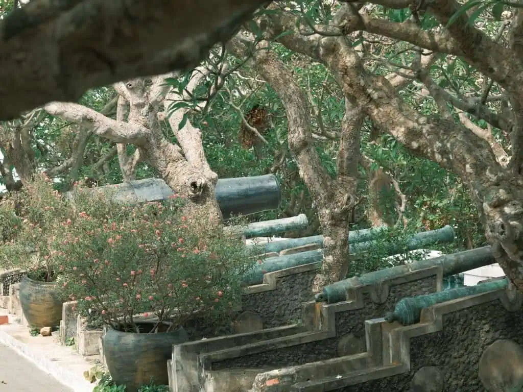 Còn nếu thích đi bộ và khám phá, bạn có thể chọn lối cầu thang 146 bậc dẫn thẳng lên Bạch Dinh. Dọc hai bên là hàng cây sứ lâu năm, khi vào mùa hoa nở, cả không gian như bừng sáng với sắc trắng tinh khôi, tỏa hương dịu nhẹ trong gió biển. Đây chính là góc “sống ảo” lý tưởng, nơi bạn có thể thỏa sức chụp những bức ảnh đẹp mê hồn, lưu giữ kỷ niệm trong chuyến tham quan.