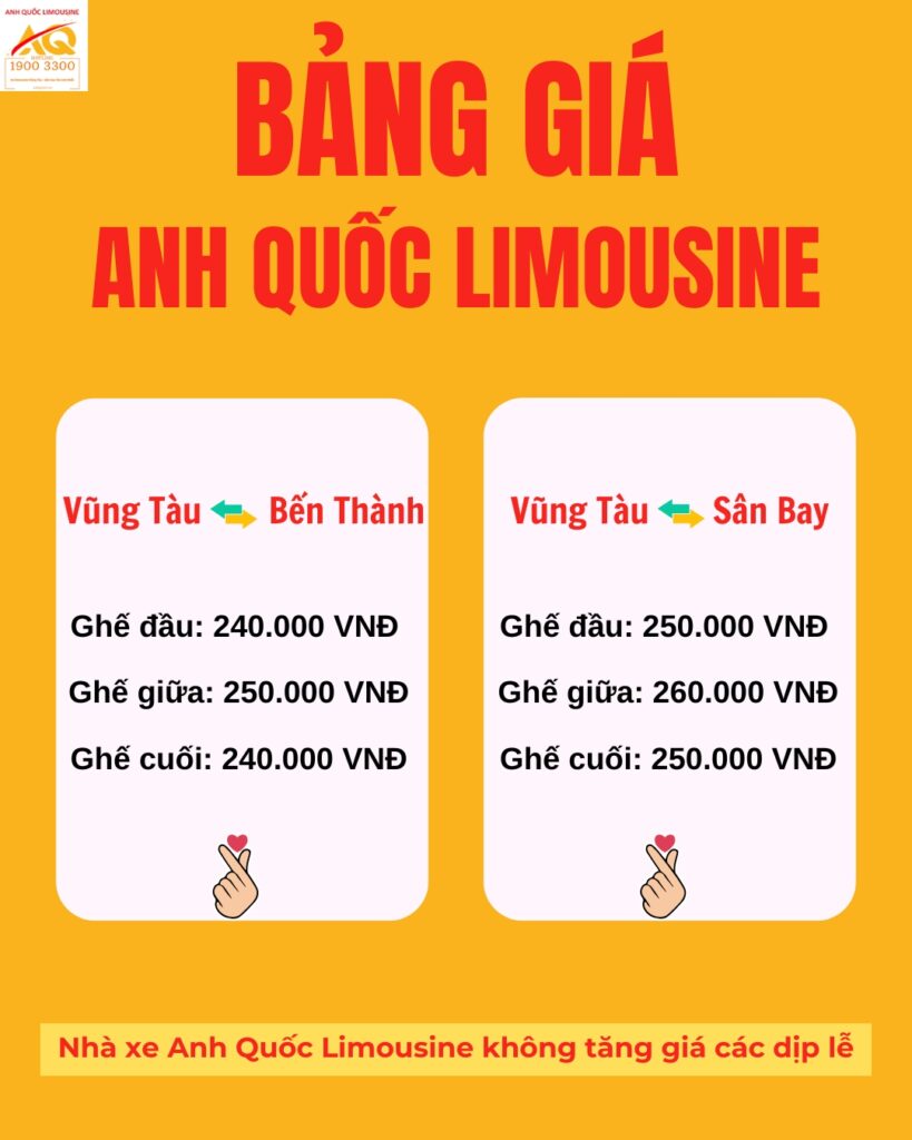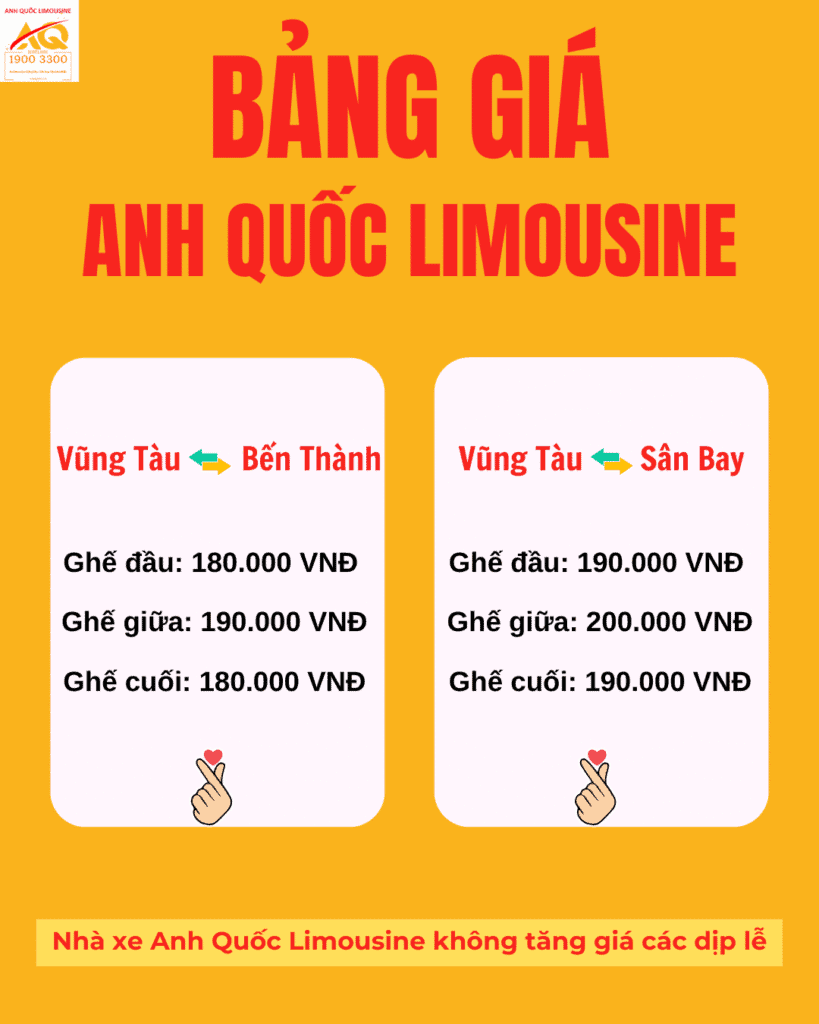 Bảng giá vé xe của nhà xe Anh Quốc Limousine
