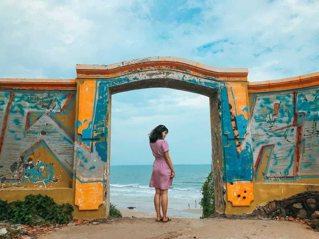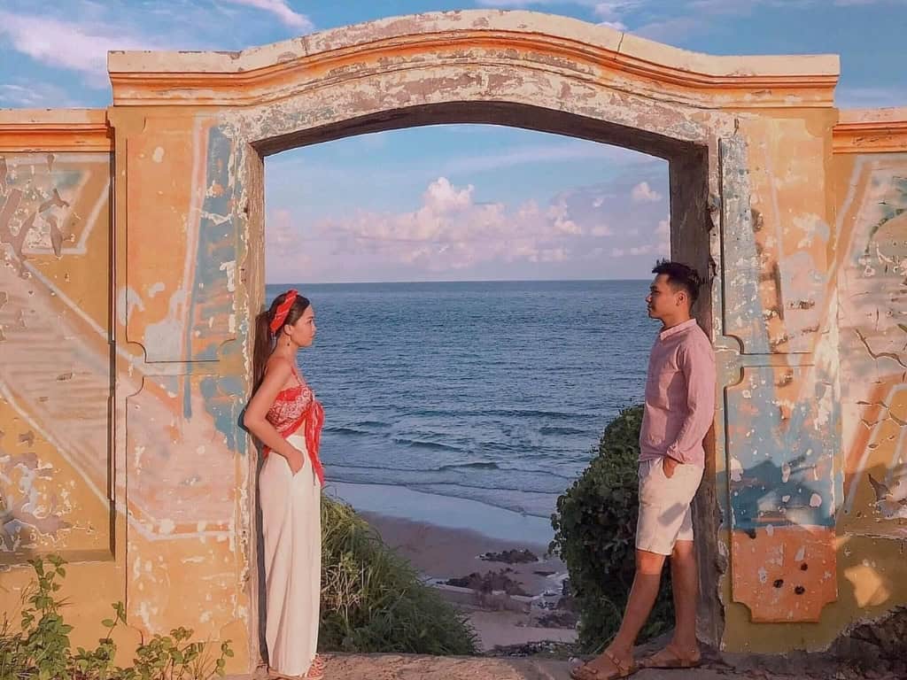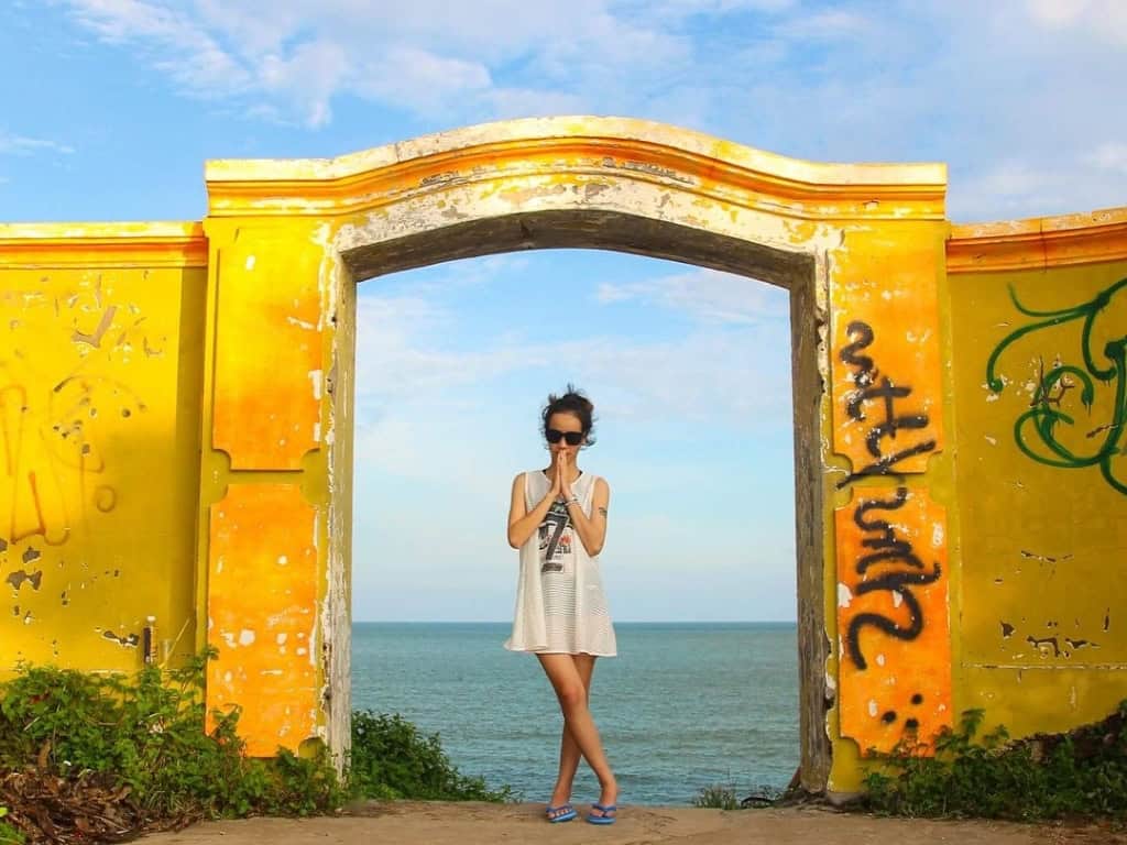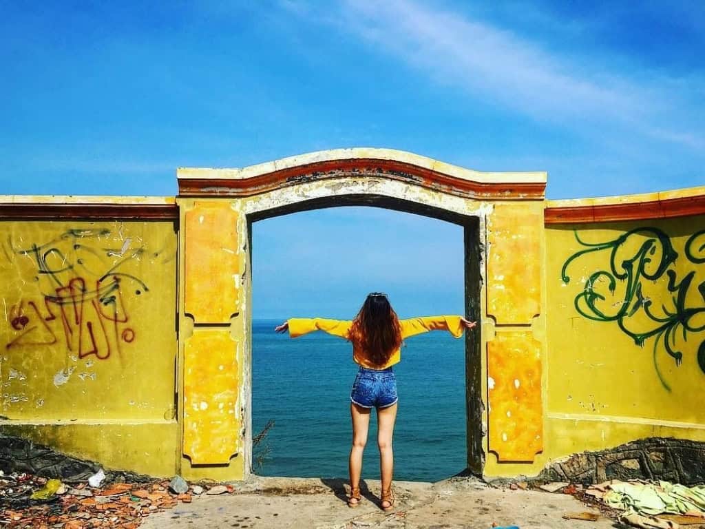 Với bức tường cũ được sơn màu vàng rực rỡ và cánh cổng bỏ ngỏ, nơi đây đem đến cho du khách cảm giác như đang bước chân vào một thế giới khác. Khi vượt qua cánh cổng này, xuất hiện trước mắt bạn là một bức tranh sơn thủy hữu tình độc đáo, với biển vây quanh núi, núi ôm lấy biển, tạo nên khung cảnh hùng vĩ và yên bình đến lạ thường.