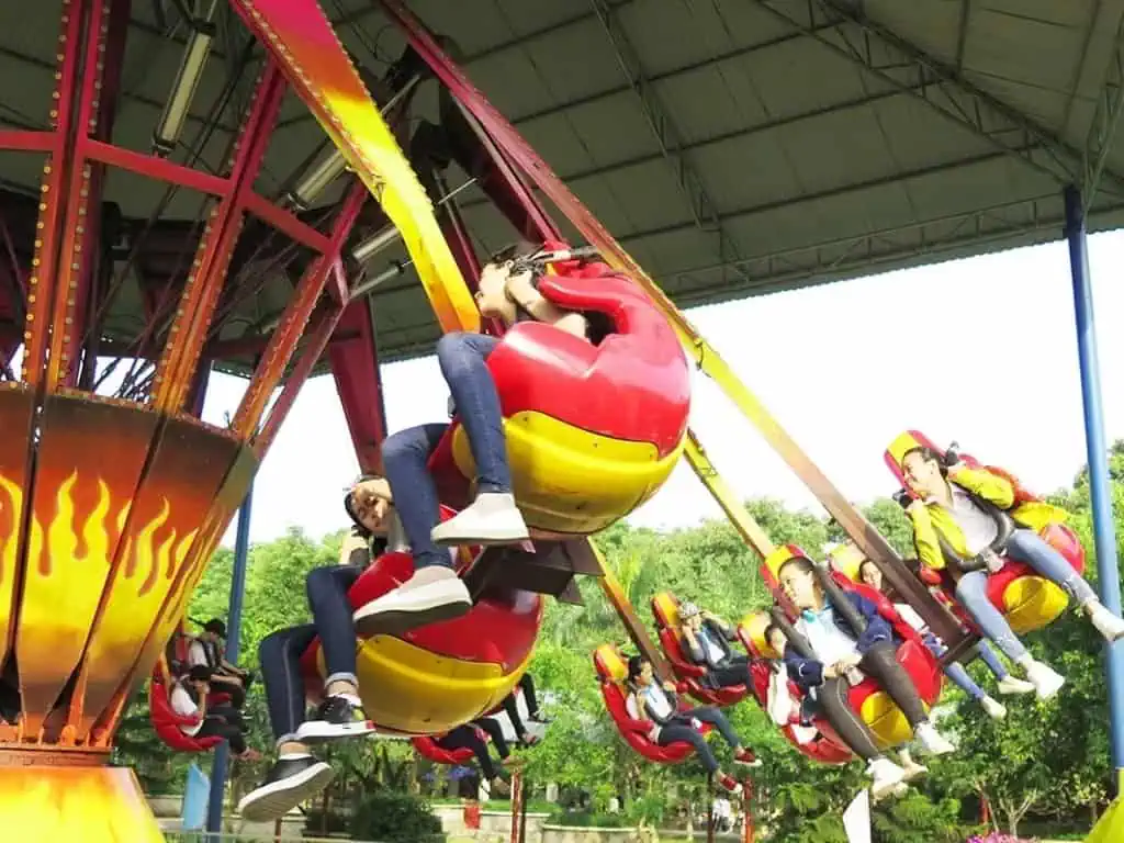 Còn nếu đi cùng với các bạn nhỏ, bạn cũng có thể lựa chọn cho mình những trò chơi nhẹ nhàng và phù hợp hơn như: câu cá, nhà hơi, xe ngựa hoàng gia, xe lửa cổ tích hoặc tham gia những trò chơi dân gian thú vị. Bên cạnh đó, khu vui chơi ngoài trời vô cùng rộng lớn còn đem đến cho du khách rất nhiều những trải nghiệm thú vị khác như: tô tượng, đi máy bay, khám phá khu Mexico Hát, chèo thuyền…