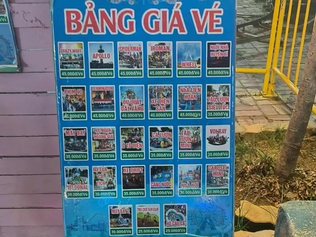 Khi mưa lớn hoặc thời tiết xấu, nhiều trò chơi ngoài trời sẽ tạm dừng để đảm bảo an toàn, bạn nên theo dõi dự báo thời tiết và hỏi trực tiếp quầy vé trước khi quyết định giờ đi.