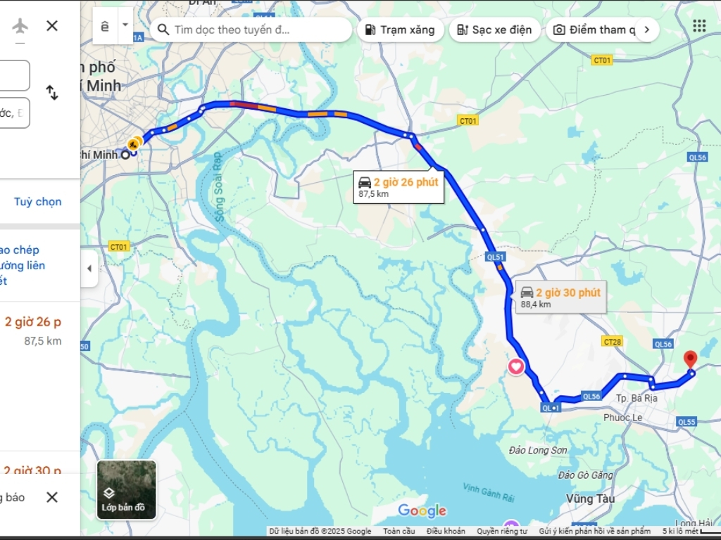 Di chuyển bằng ô tô hoặc xe máy qua Quốc lộ 51, chỉ mất khoảng 30 phút lái xe.
