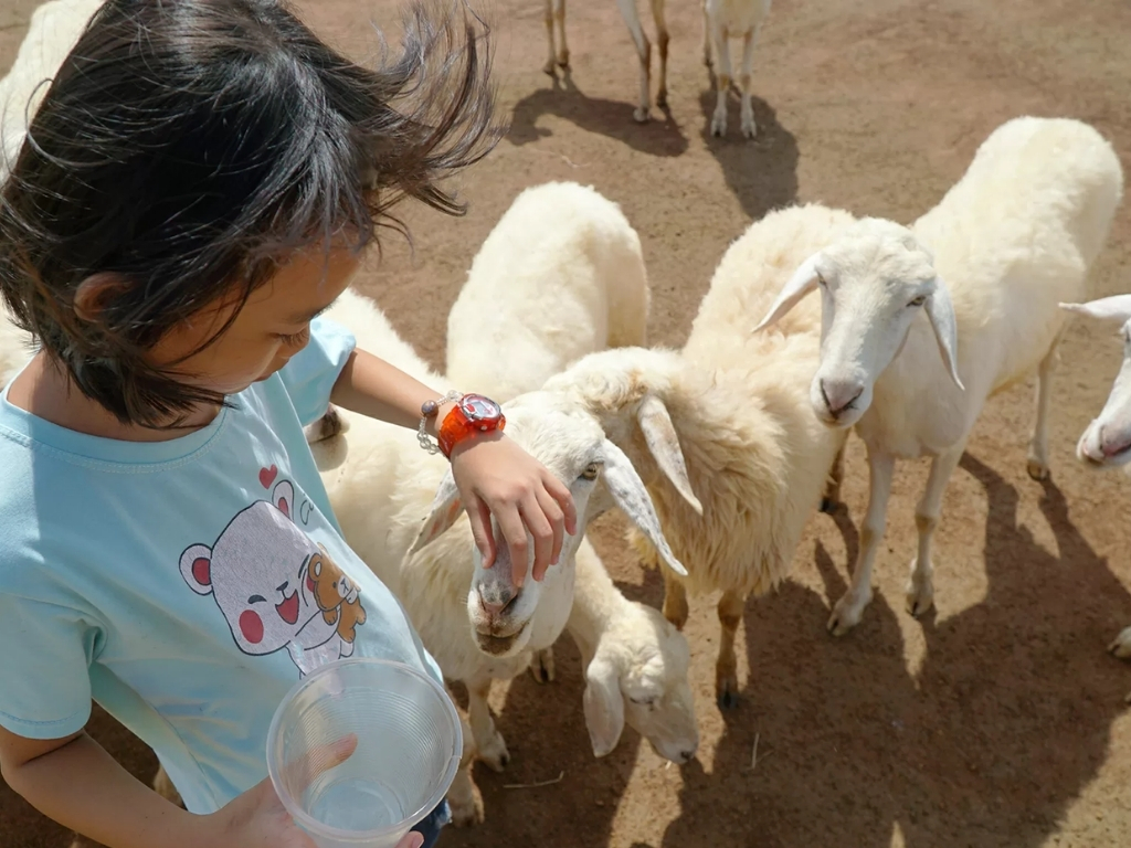 - Tiếp cận cừu nhẹ nhàng: Cừu khá hiền nhưng dễ giật mình, vì vậy bạn nên tiếp cận từ từ và làm theo hướng dẫn của người chăn cừu để dễ tương tác và chụp hình hơn.