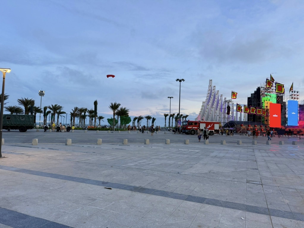Tháp Tam Thắng nằm tại quảng trường Bãi Sau, là công trình mới thu hút nhiều du khách đến tham quan và chụp ảnh. Vào buổi tối, khu vực này trở nên sôi động với ánh đèn lung linh cùng nhiều hoạt động văn hóa, nghệ thuật và lễ hội.