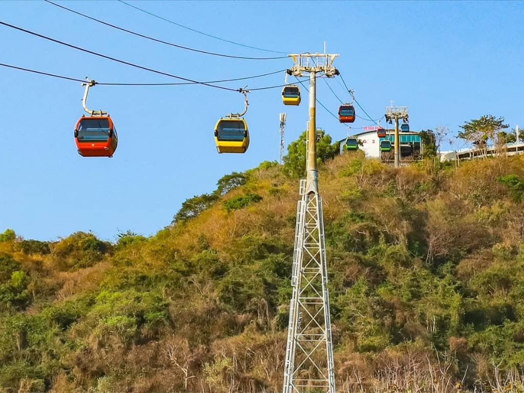 Sau khi đến chân Núi Lớn, bạn sẽ tiếp tục hành trình bằng cáp treo để đến khu du lịch Hồ Mây Vũng Tàu. Chuyến cáp treo xuất phát từ Nhà ga số 1 trên đất liền, sau 10 phút di chuyển sẽ đến Nhà ga số 2 trên đỉnh Núi Lớn.