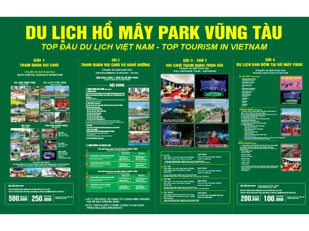 Bảng giá dịch vụ đoàn tại Hồ Mây Park Vũng Tàu