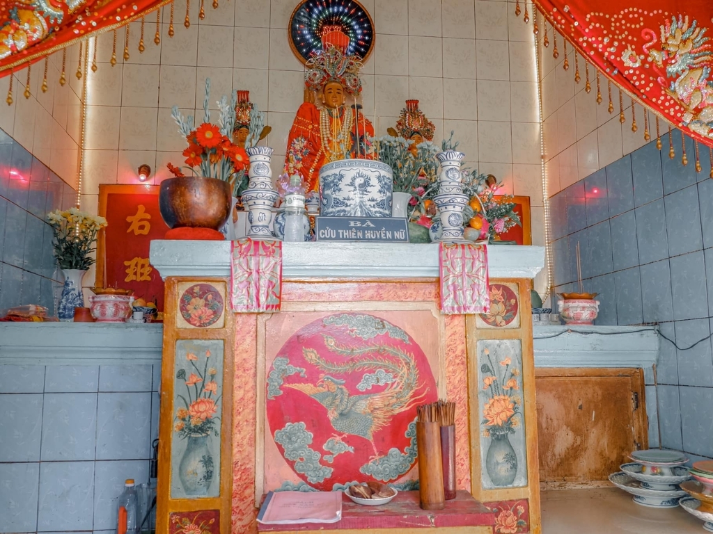 Tại đỉnh núi có miếu thờ bà Cửu Thiên Huyền Nữ, nơi vẫn còn lưu dấu bàn chân nhỏ trên vách đá. Đây là điểm dừng chân quen thuộc của nhiều du khách khi muốn chiêm bái và tìm sự an yên về tinh thần.