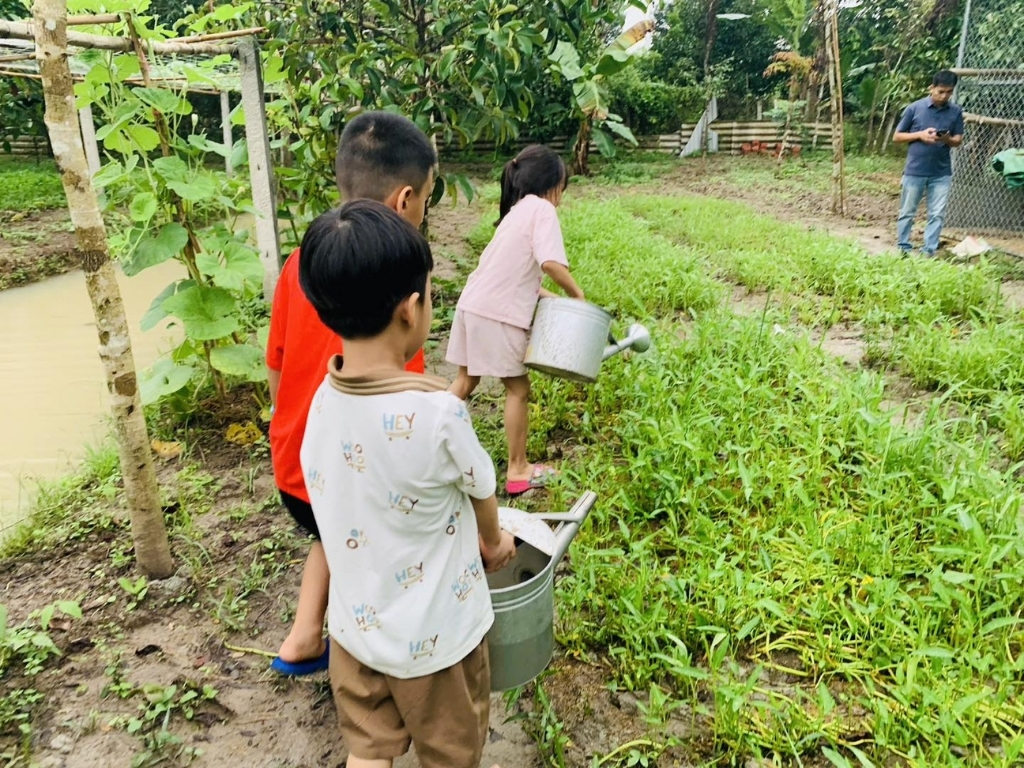 Khu vực vườn rau trồng nhiều loại đặc trưng miền Tây như rau muống, rau nhút, rau trai… Du khách có thể tự mang rổ xuống vườn, lội ruộng hái rau như một người nông dân thực thụ. Đây là hoạt động được nhiều gia đình lựa chọn để trẻ nhỏ có cơ hội trải nghiệm thực tế và hiểu hơn về đời sống nông thôn.